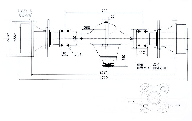| 橋型 | 橋荷 | 輸入扭矩 | 主減速比 | 邊減速比 | 總速比 | 制動鉗制動力炬 |